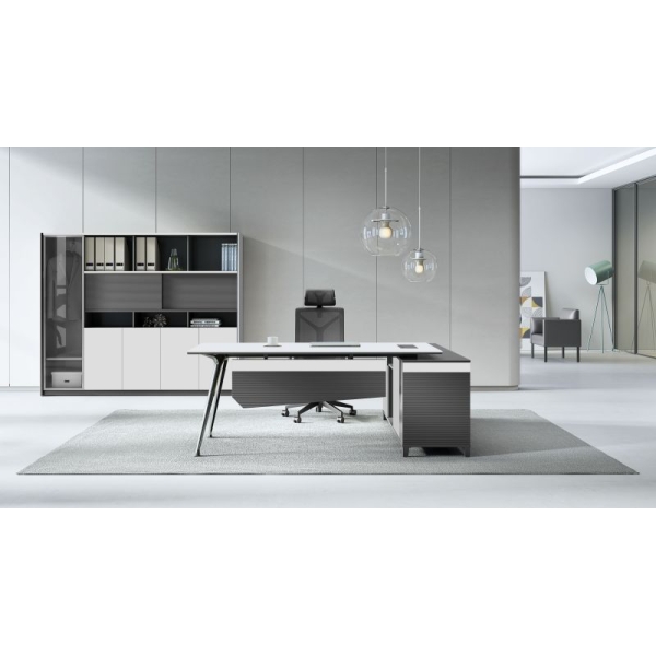 Black and Grey Panel L-shaped Modern Executive Table & Desk