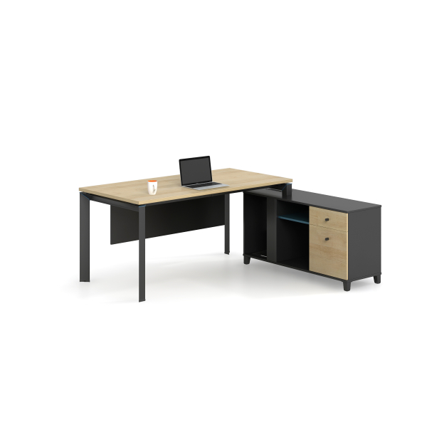 C Series L-Shape Executive Brown Office Desk with Side Table