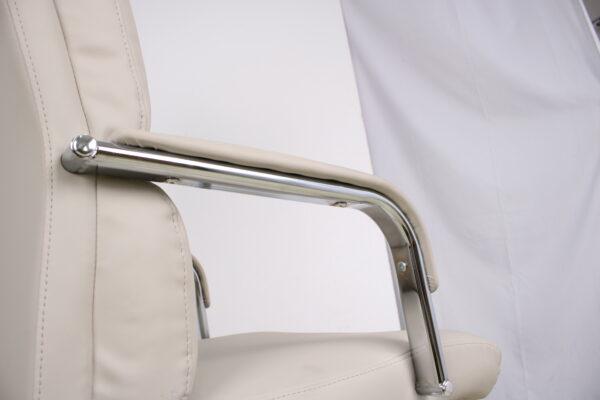 Experience comfort and sophistication with this premium executive office chair, designed to support long hours of productivity. Upholstered in high-quality beige leatherette, it offers a modern aesthetic that complements any professional workspace.