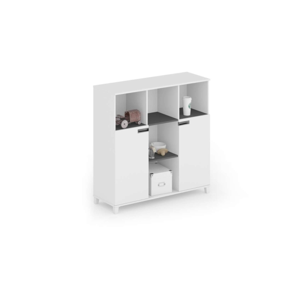 – At the bottom of this cabinet, there are three doors for some closed storage options. And in the center of the cabinet, there are two doors for office files use.